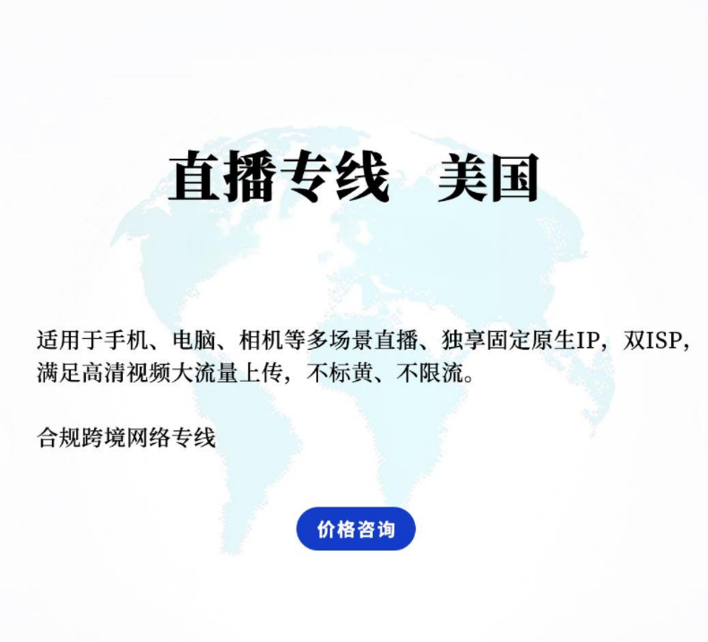 提供纯净原生IP享受平台正常推流,降低封号、限流、黑屏、0播等问题,正规报备,线路业务均为白名单模式。